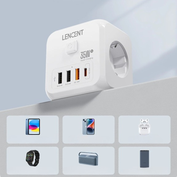 Un adaptateur pour prises est inclus dans cette multiprise, qui peut être utilisé avec de multiples types de prises. Il est possible de connecter plusieurs appareils simultanément, tout en préservant un espace bien organisé. Une solution parfaite pour les environnements contemporains qui nécessitent une alimentation efficace et adaptable.