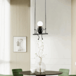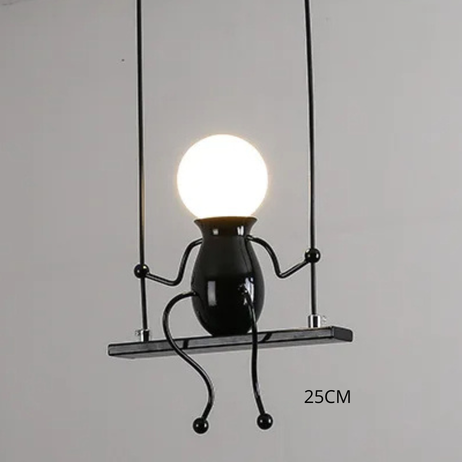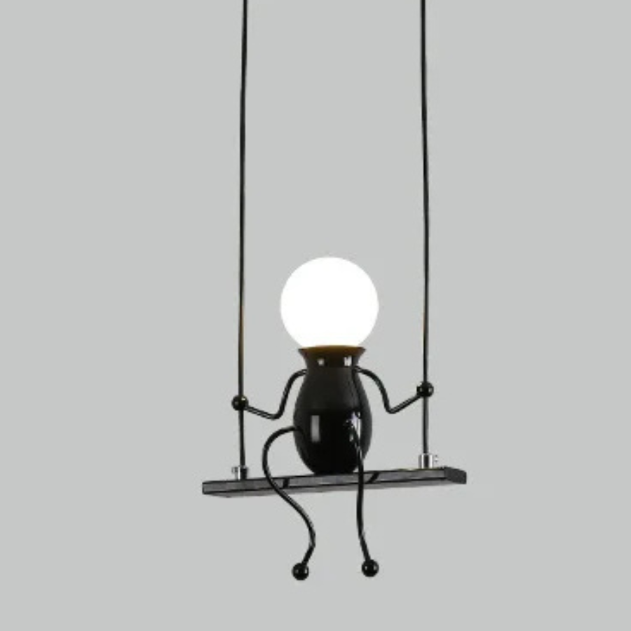 A la fois moderne et élégante, cette lampe à suspension au design de balançoire et son petit homme assis apportera une touche de poésie dans votre intérieur. Et vous profiterez de sa douce lumière pour lire et vous détendre après une longue journée de travail.