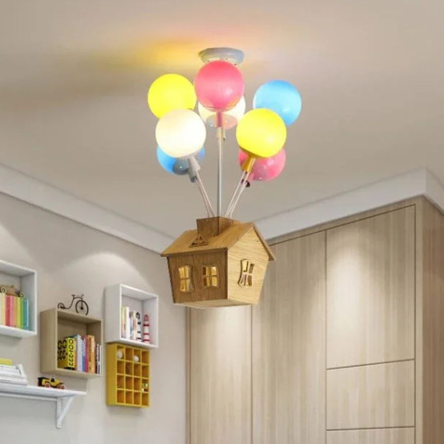 Avec ses ballons colorés et sa maisonnette suspendue, cette lampe se transforme en un véritable accessoire décoratif. Il transforme l’espace en un endroit amusant, favorisant l’imagination et la créativité, tout en proposant un éclairage LED économe en énergie et approprié à la vie de tous les jours des enfants.