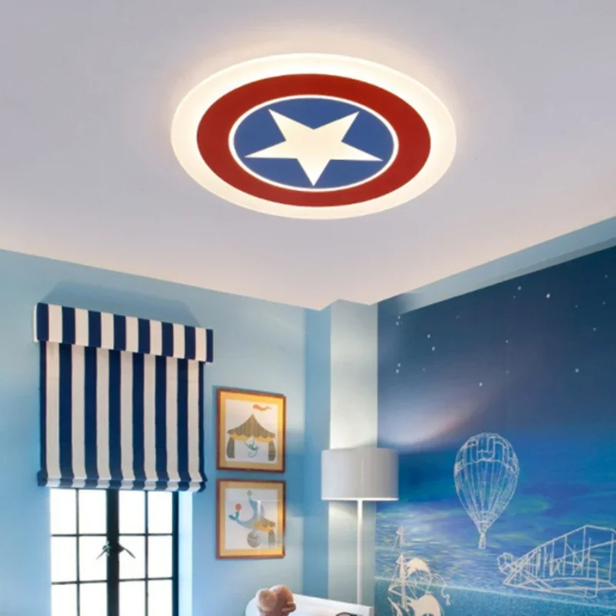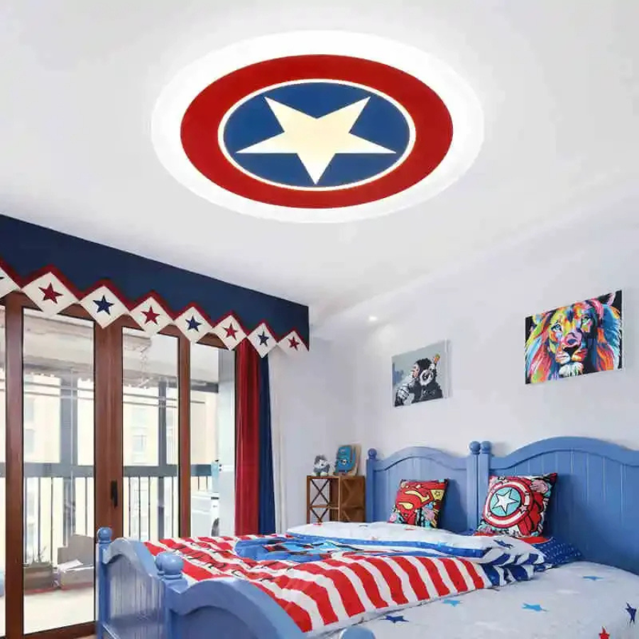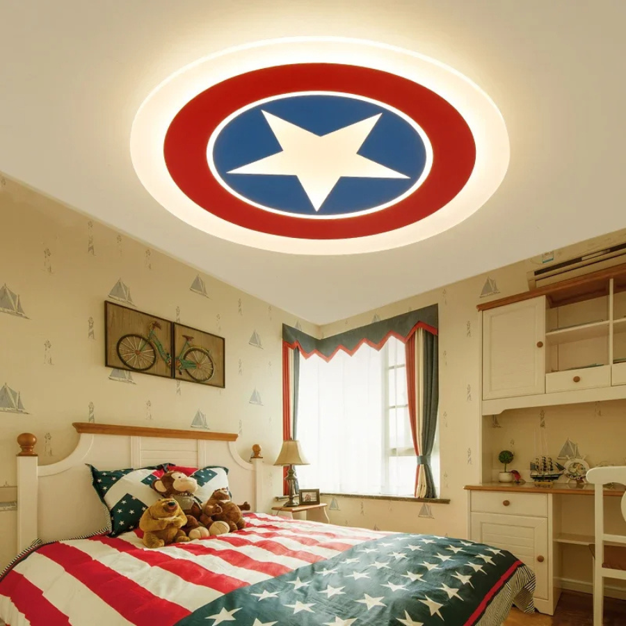 Ce plafonnier Captain America, avec ses teintes éclatantes et son emblème distinctif, attire immédiatement les petits fans de super-héros. C’est l’élément décoratif qui allie attrait visuel et utilité, pour une chambre à la fois élégante et pratique.