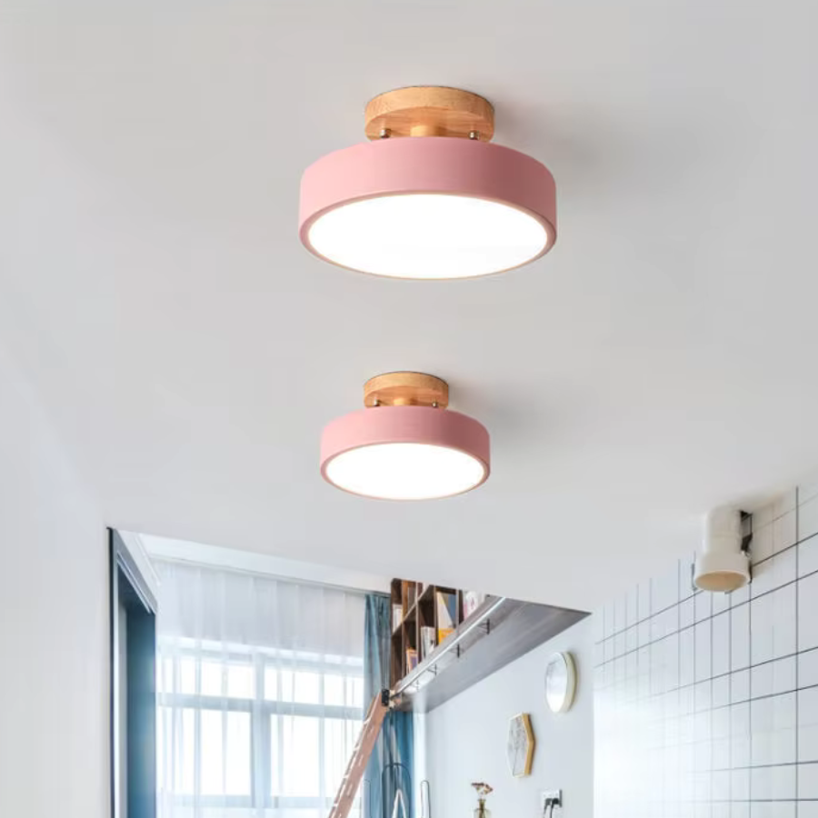 Ce plafonnier fusionne la beauté du bois et les teintes vives pour créer une atmosphère conviviale et moderne. Conçu pour des espaces de vie, des chambres ou des bureaux, il procure une lumière équilibrée tout en sublimant le style de votre décoration.