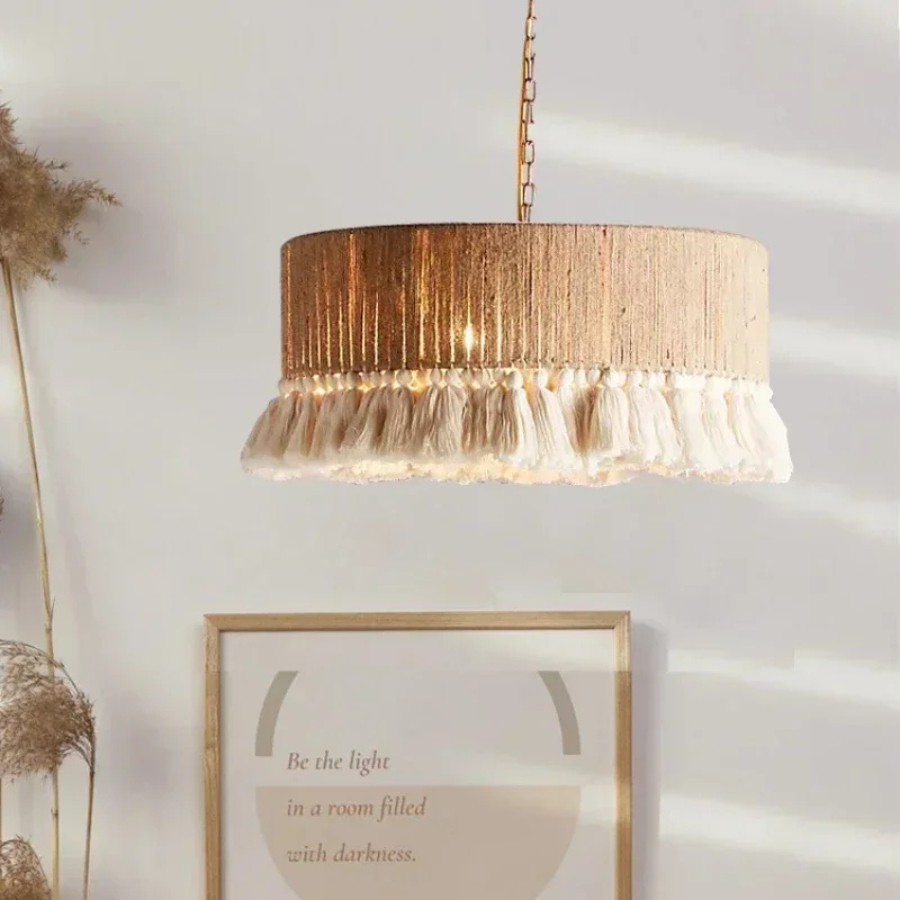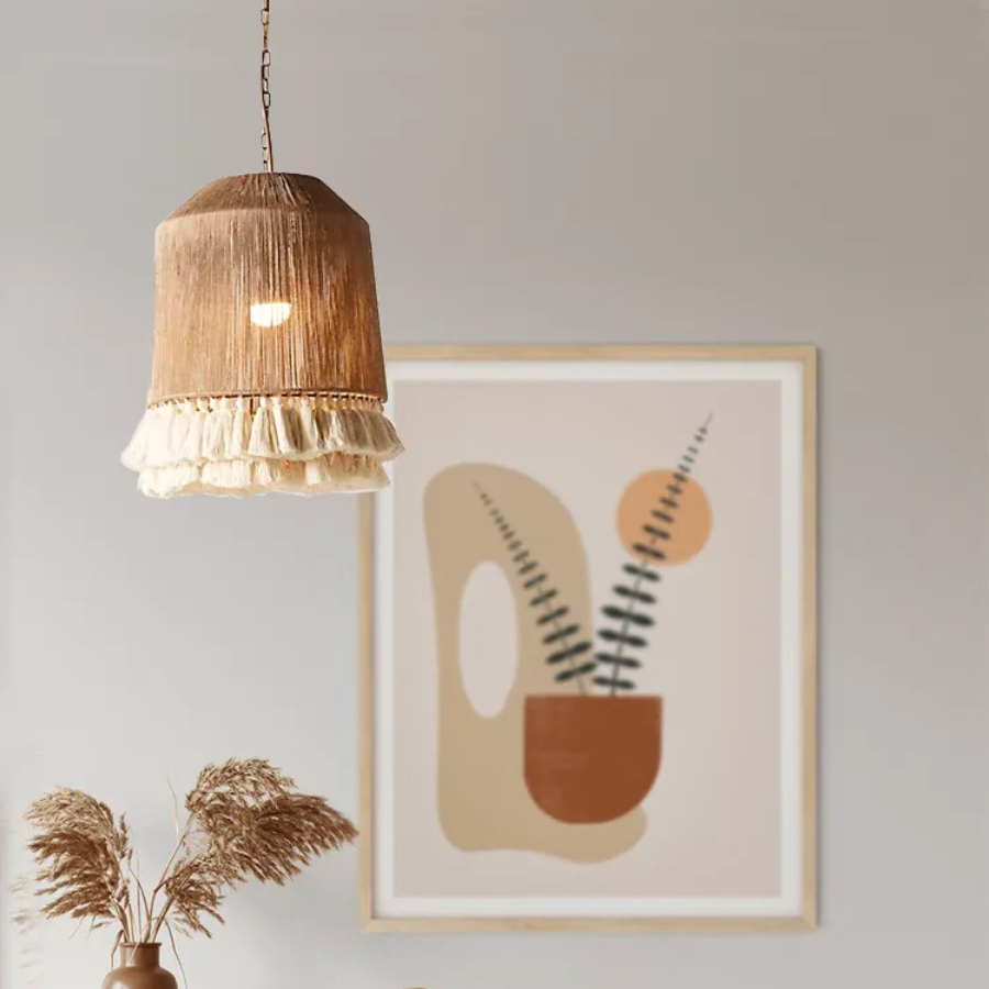 Vous pouvez apporter une note de charme naturel à votre chambre grâce à ce plafonnier en corde et en tissu. Ce plafonnier est parfait pour ceux qui souhaitent un éclairage doux et chaleureux, ce qui en fera l’élément essentiel de votre décoration tout en offrant une lumière agréable pour vos moments de détente. Une fusion idéale entre élégance et praticité.