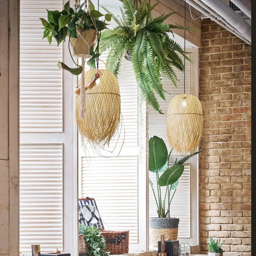 La lampe suspendue en bambou au design rétro est une pièce de choix pour les amateurs de décoration vintage et écologique.