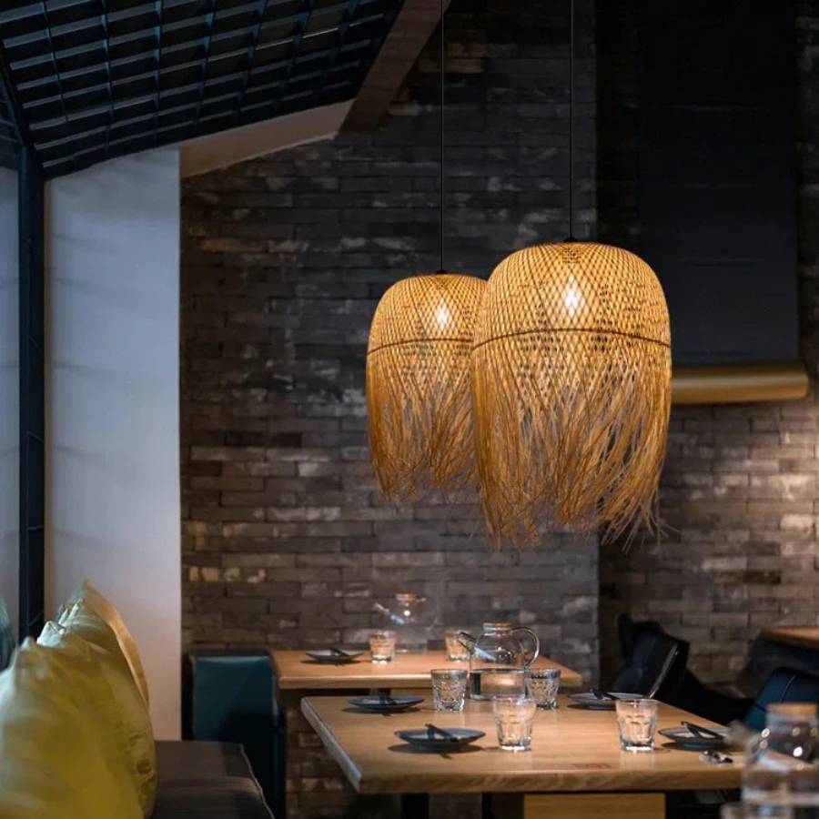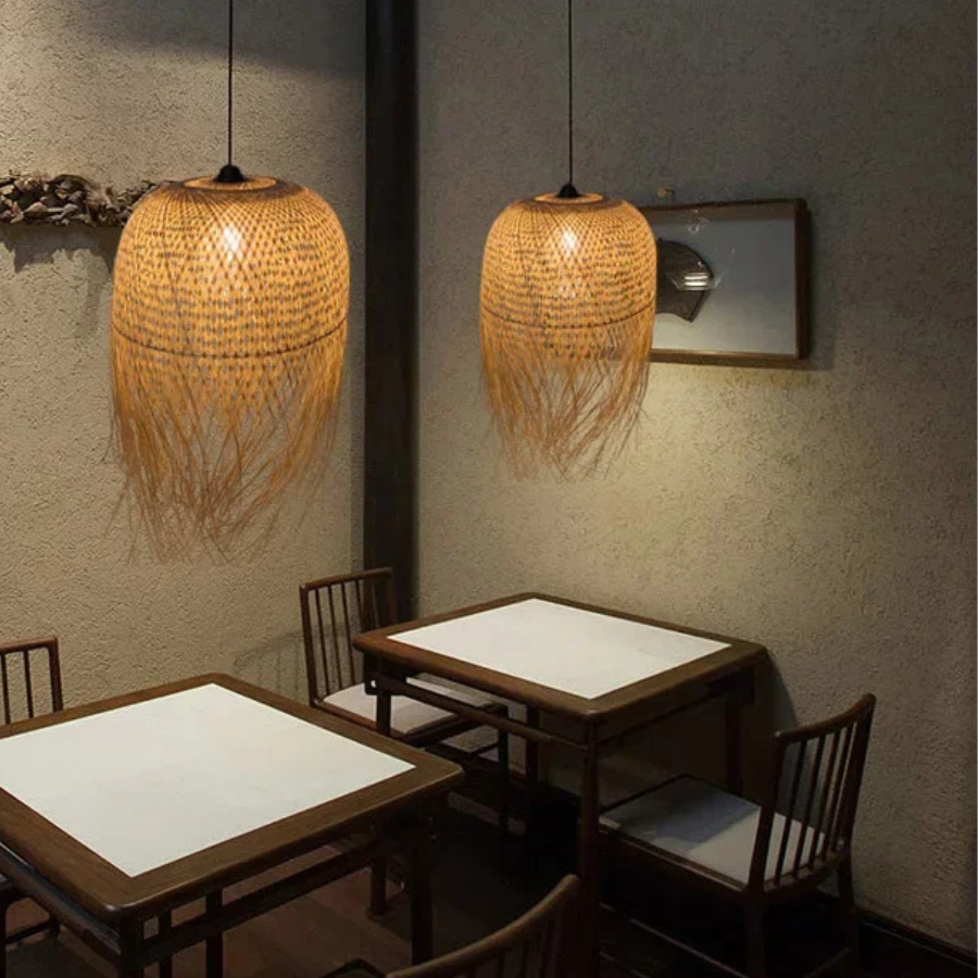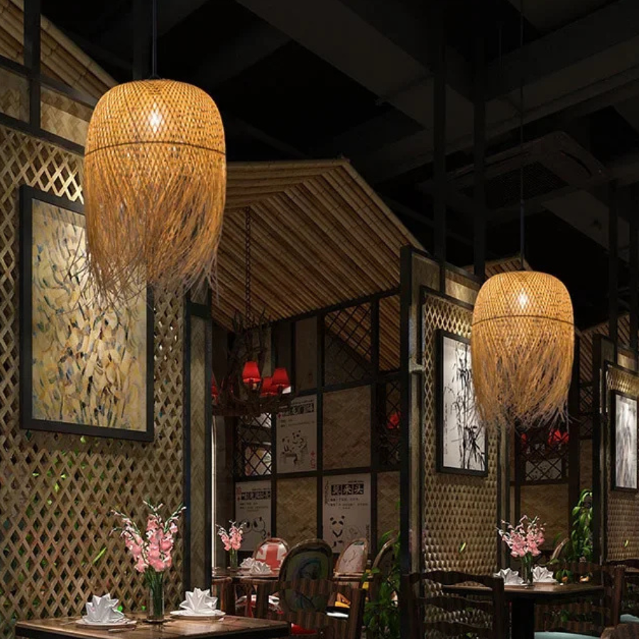 La lampe suspendue en bambou au design rétro est un accessoire idéal pour apporter une touche d’exotisme à votre décoration intérieure.