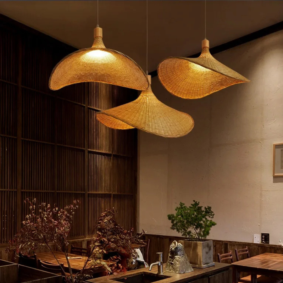Plafonnier rotin naturel design – luminaire artisanal bohème chic
