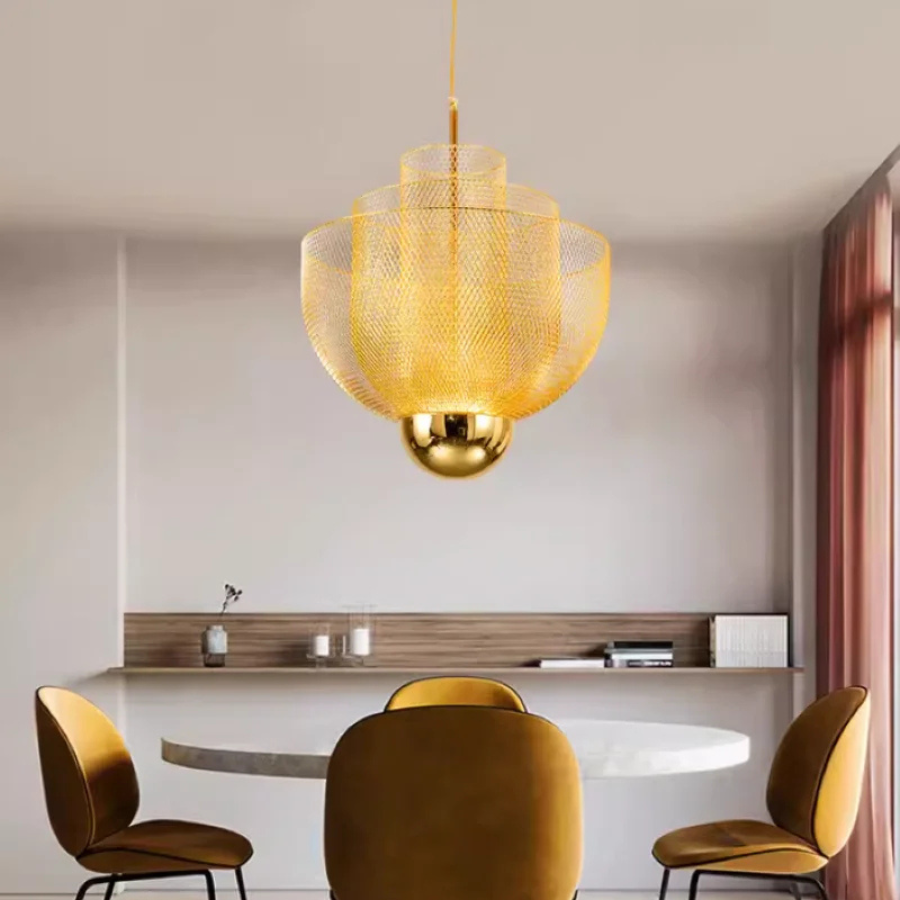 Ce luminaire suspendu doré en métal combine l’élégance minimaliste du design nordique à une note contemporaine. Avec son éclat doré mat et ses formes géométriques, ce produit confère une allure intemporelle à votre décoration intérieure, parfait pour les espaces de vie contemporains tels que les salons et les cuisines.
