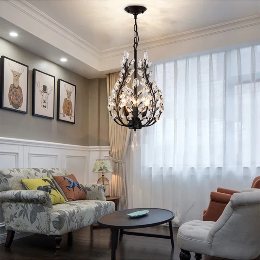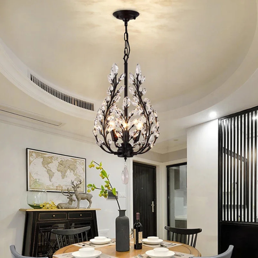 Le cristal noir saisit la lumière de manière délicate, diffusant un éclat sophistiqué. Ce luminaire de plafond allie habilement le style rétro à une sophistication moderne, donnant un effet à la fois éternel et envoûtant, parfait pour un aménagement intérieur classique ou moderne.