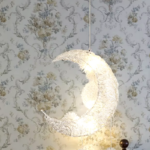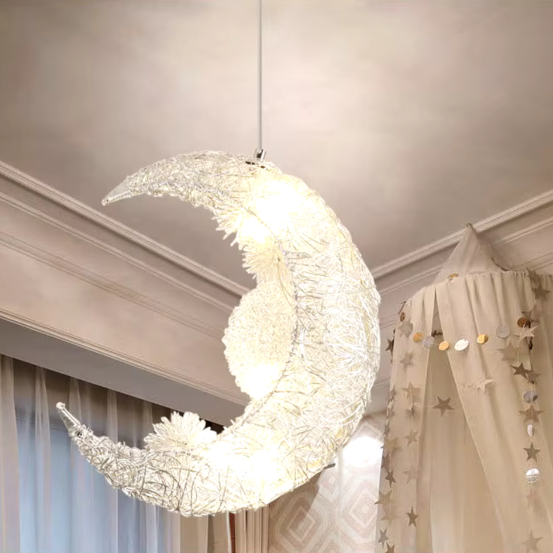 Avec ce plafonnier suspendu en forme de Lune, vous pouvez instaurer une ambiance tranquille et rêveuse dans la chambre de votre enfant. Sa conception minimaliste et contemporaine ajoute une note magique, tout en projetant une lueur apaisante et douce, idéale pour les instants de relaxation et de repos.