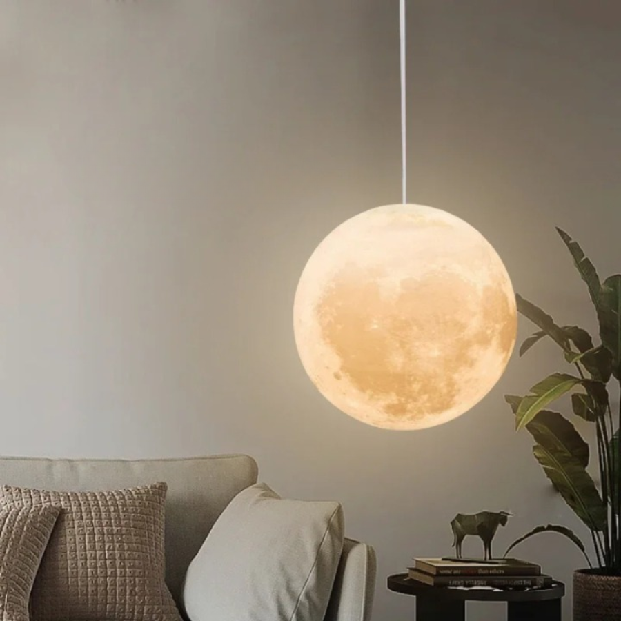 Ce luminaire, pensé pour rappeler la tendresse et l’énigme de la lune, projette une lumière douce et accueillante. Son design flottant et léger donne une touche céleste à votre intérieur, parfait pour les chambres ou les espaces de lecture au ton intimiste.