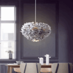Plafonnier en forme de plume arrondie : une note de douceur en vol.