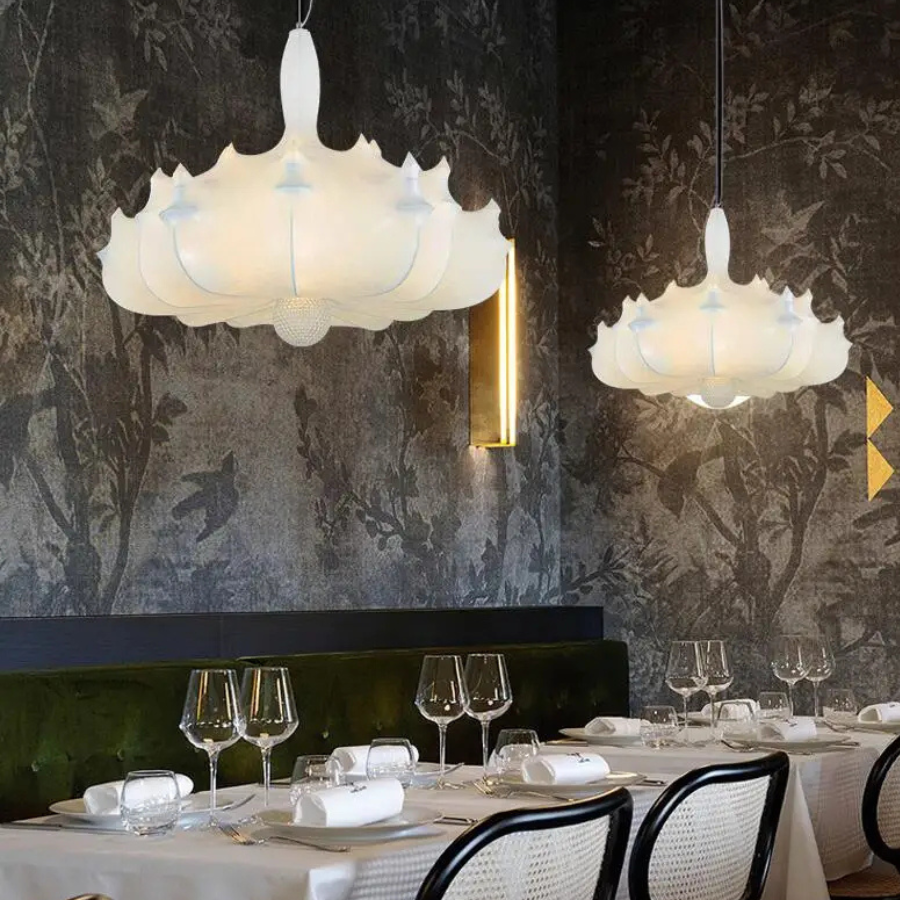 Transformez votre intérieur en ajoutant une note de sophistication grâce à ce plafonnier en tissu de style Zeppelin. Sa conception aérienne et son éclairage doux instaurent une ambiance chaleureuse et raffinée, parfaite pour embellir votre salon.